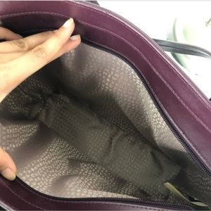 BEAUTIFUL deep rich elegant plum purse. NWT smoke/pet free home. Super roomy while maintaining a sleek profile. Wipes easily shes just screaming for a good home.