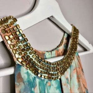 Vince Camuto Halter Gold neck W/Aqua print 0031