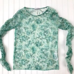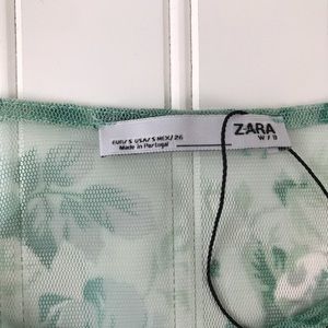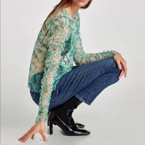 NEW Zara | Tulle Sheer Green Floral Top | Small
