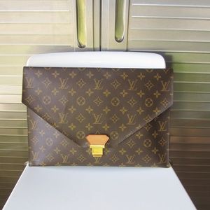 Louis Vuitton Clutch GM Poche Business Portfolio EUC Rare! Unisex. 100% authentic. Preowned. Date code: 894 AN. Dimensions: 13.7" length, 10.6" height. Bag is shown filled. Excellent condition, no damage. Monogram canvas is nice and vibrant, very clean, edges & corners good. Shiny hardware with a few tiny scratches, see pics. Versatile, holds a lot. Carry as a clutch, use as a business pouch/documents case. Includes Louis Vuitton dust bag.