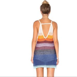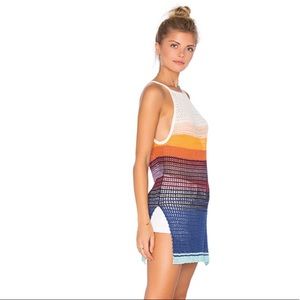 Made with a mix of loosely knit yarns, this long square neck tank has a cool bohemian feel, while exposed back and split hem keep the look totally contemporary.