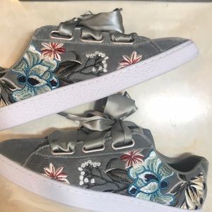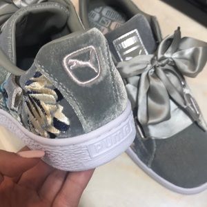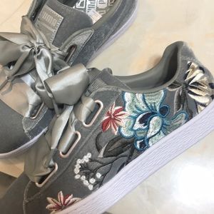 Velvet Pumas with floral designs on the side!