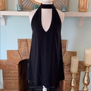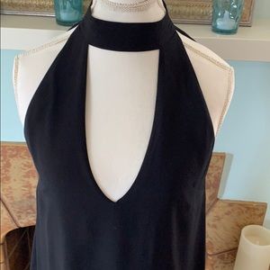 Sexy black Tobi dress. Deep plunge in front and back. No size tag. Please see measurements