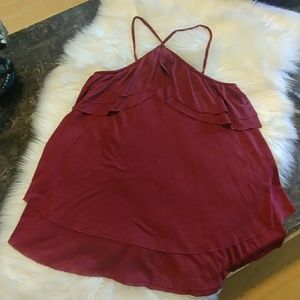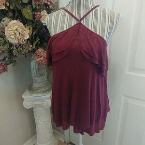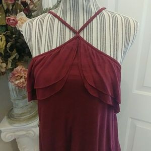 Gently worn. XS Sun & Shadow Wine π· Layered Textured Halter Top. Super cute.. Soft.. Great top for the summer.. Perfect for under a jacket or alone...