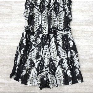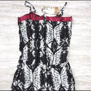 NWT size Medium. This is a super cute romper by DA-NANG! It is made out of lightweight 100% woven silk in a black & white batik pattern called "Evil Eye" and it has red/pink/black trim around the neckline. It features adjustable (whole length) spaghetti straps, slight sweetheart neckline with 2 buttons in front & elasticized smocking in back, a drawstring waist, two slant hand pockets in front & two back patch pockets. MSRP $165. I ship same/next day Monday through Saturday excluding holidays.