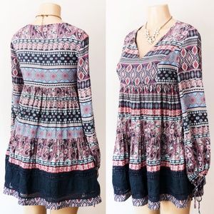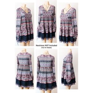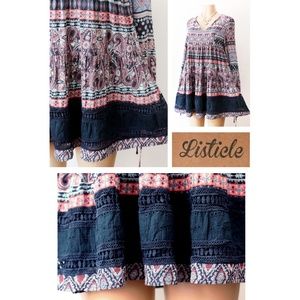 Navy Blue Multi BOHO Print Babydoll Tunic Blouse
