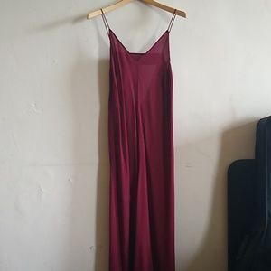 Color: cranberry. Gorgeous slip dress in great condition! Slit on one side (see stock photo for reference). Just an FYI: my dress did not come with the belt, so I cannot include that in your order.