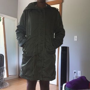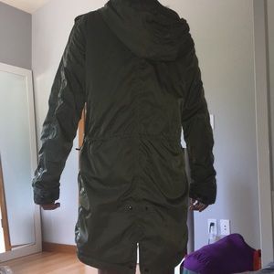 great condition dark green denim & supply ralph lauren rain coat with attached hood. the cover photo is a jacket very similar to the jacket i am selling please comment if you want to know them. price negotiable!!!