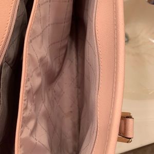 This is a barely used pink tote micheal kors bag. This is 1000% authentic! Great for anyone! This is a great purse! Have a few stains but not that noticeable!