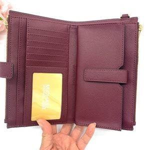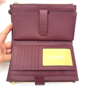 Michael Kors Saffiano Leather Set Double Zip Wristlet/ Merlot