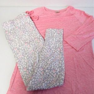 Honeydew Women's Small Pajama Set Long Pants Gray Pink 3/4 Sleeves NWT