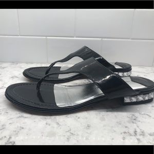 Black patent leather thong sandals with Bling heel