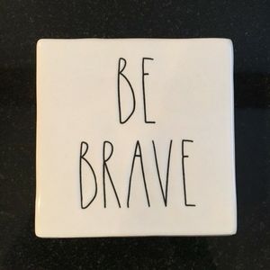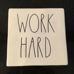 The item for sale is a Rae Dunn Work Hard - Be Brave paperweight. The item is brand new!