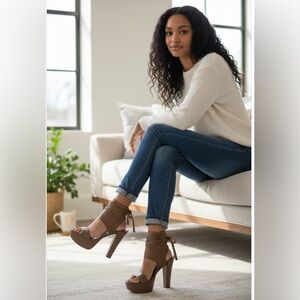 Vera Wang Lavender Abby Buckskin Leather Platform Sandals