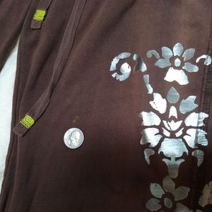 Yogi casual black and silver loose drawstring pants. No rips or tears. Small stains as shown in photos. Tons of life left in them.