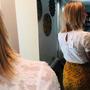 SOLD NWT XS Lucky Brand Clipped Jacquard Neck Tee