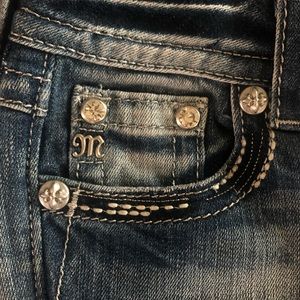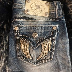 Miss Me Signature Skinny with Angel wing pockets. The fade on these are gorgeous! In great shape with decorative rhinestone pockets. Signature rise with skinny crop. Size 26