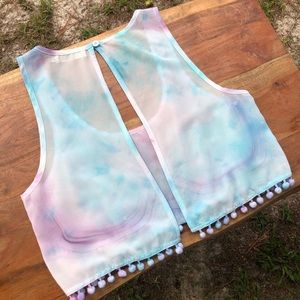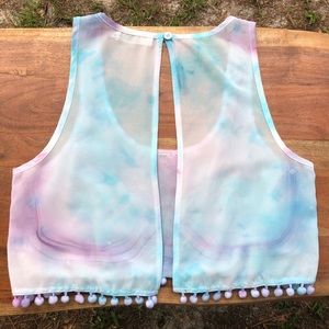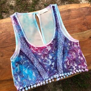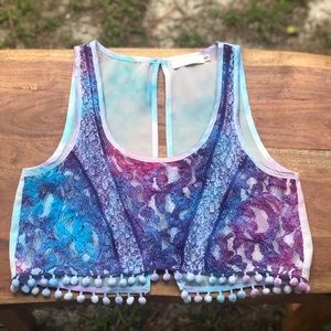 •crop cut, open back tank top by Millau -featuring lace and pompom hem!
