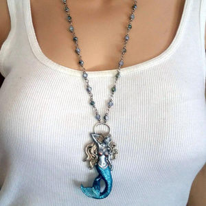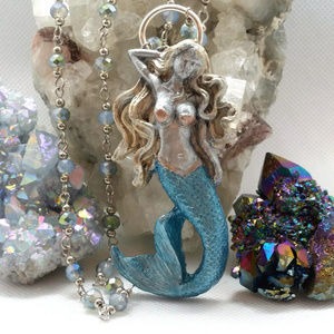 Sculpted polymer clay mermaid. Patina added to add a vintage undersea appearance.