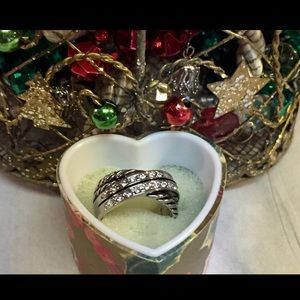 Vintage.,This has 2 different shades of silver & crystal like gem stones all on the front. All are firmly intact. Very pretty. Purchased at Macy’s