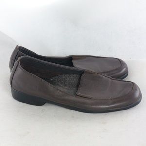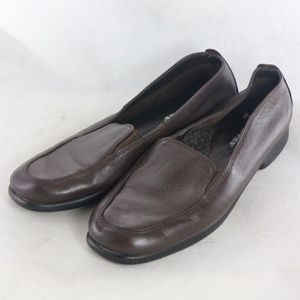 Great, lightweight brown leather loafers, clean throughout, no stains, spots, tears, holes, scuffs, fade or discoloration. Smoke and pet free.