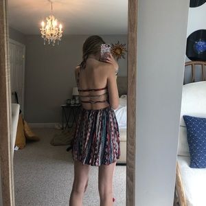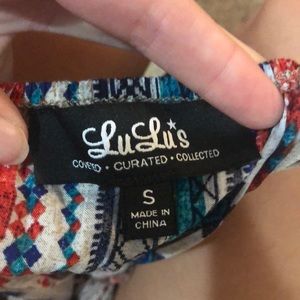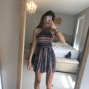 Adorable lulus size small, colorful dress with cute open back detailing and a halter fit. I have worn it only once it’s in perfect condition.