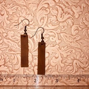 NATURAL LEATHER BAR EARRINGS BROWN LONG NEW HANDMA