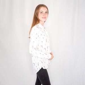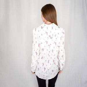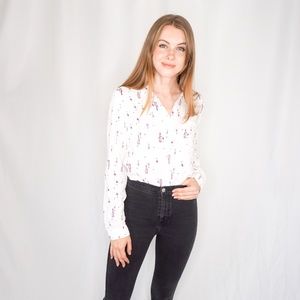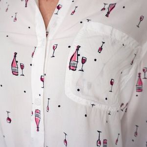Description: Light weight white Rose Wine print button up long sleeve shirt by BeachLunchLounge