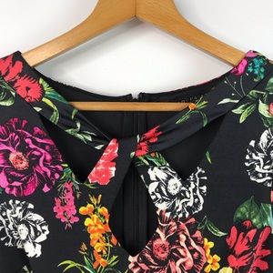 NWT Guess Black Floral Long Sleeve Romper With Lattice Front Neckline, Great Condition