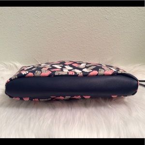 Dabney Lee medium size cosmetic bag has a detachable strap, zipper top, nylon lining and easy to clean exterior. 11”W x 8”H with a 6”strap. Brand new without tags, and in perfect condition. The colors are nice colors of white, salmon and teal. A really nice makeup bag.