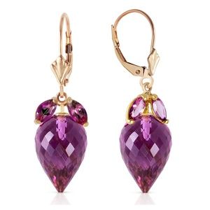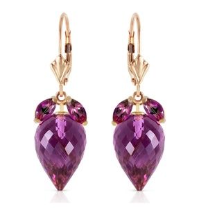 14K. SOLID GOLD EARRING WITH DANGLING POINTY BRIOLETTE AMETHYSTS (Yellow Gold)