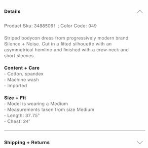Urban Outfitters Silence + Noise striped ribbed mini dress with asymmetrical hem. Fabric is so soft and body hugging. My favorite dress, but it unfortunately doesn’t fit anymore.