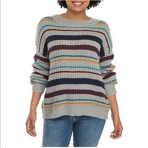 Colorful stripes give this Eyeshadow sweater 90's vibes for a cozy and stylish layer.