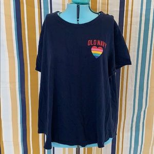 Cute fun navy blue Old Navy shirt with rainbow heart detail. No rips or stains. Smoke free home. Size XXL. 24 inches pit to pit, 25 inches long. (6)