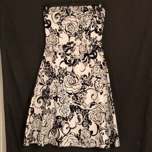 Black and White Floral Strapless Dress