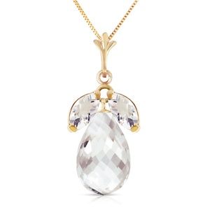 14K. SOLID GOLD NECKLACE WITH NATURAL WHITE TOPAZ (Yellow Gold)