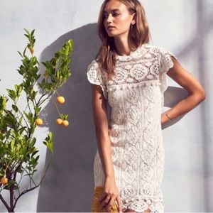 With pom-poms across the front and a sheer embroidery yoke, this cap sleeve mini dress is the kind of playful throw-on you'll snap more than a few pics in.