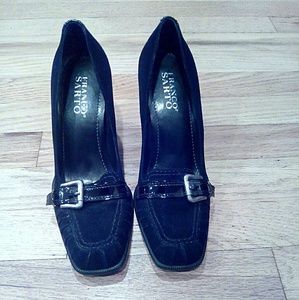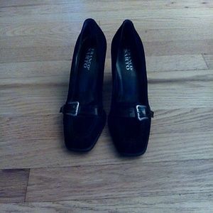 A wise shopper for these stunning mostly suede leather dress pumps.. with nonskid soles. Extremely comfortable. They are in excellent condition and would be your go to pair at the office...after hours or with jeans. Size 7. Scuffs on soles.
