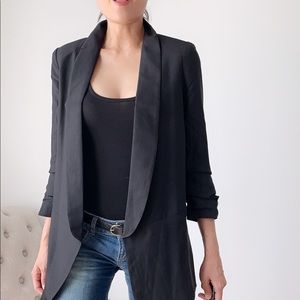 Stylish long open front shawl lapel blazer