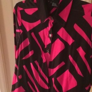πHPπ Etcetera New never worn Hot pink/black design shirtwaist shift dress with long sleeves. Button from neck to waist only. Fake button from dropped waist to hem. Loose comfortable but shown with wide black belt (not included) to show a different way to wear. New never worn condition. Shell 100 percent rayon. Measures 19 inches from pit to pit flat and 38 inches from shoulder to hem. Seller not responsible for brand sizing or fit