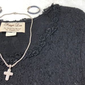 Black midi dress with lacy top half