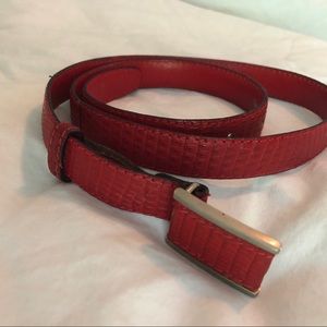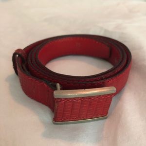 Amazing red leather Bottega Venenta Belt! Great to spice up and add color to many outfits. Some discoloration along the belt and two small cracks. (please see all photos).