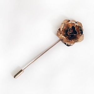Description: A beautiful and unique way to dress up your suit if you are a man or wear on a nice dress or top if you are a woman. A gold metal 3D rose flower lapel pin or brooch. Can be worn with just the head of the rose showing or with the tip of the pin exposed.