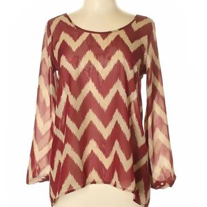 Charming Charlie red and beige chevron print high low blouse. Sexy crisscross back with elastic at sleeves. 100% Polyester