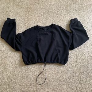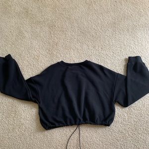 BLACK LONG SLEEVE CROP TOP WITH DRAWSTRING