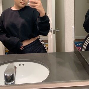 SUPER CUTE BLACK LONG SLEEVE CROP TOP WITH ADJUSTABLE DRAWSTRING