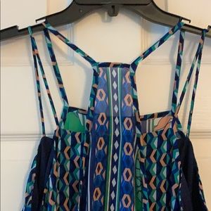 This great condition silk dress is multi layered, multi colored, and multi print. It is super cute and very flattering with the layers!