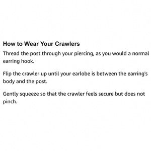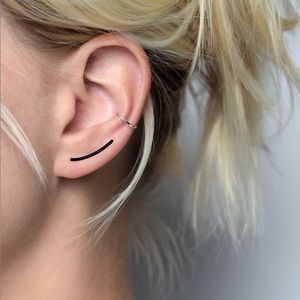 Black Ear Wire Crawler/Earrings No Backs Needed: Brand new boutique item. Black ear wires that can be worn as earrings or crawlers! No backs needed for these simple yet bold ear wires! Alloy; free of lead, nickel and cadmium. PLEASE NOTE: due to the individual size/structure of your ear, the ear wire may fit differently than the model photos. Please use the measurement to gauge your fit