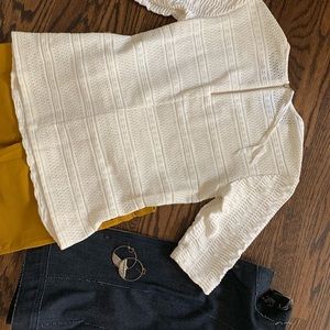 Stretchy ivory Rag and Bone top. Perfect year round piece, especially fall transition. Forgiving in the middle. Size small per tag but runs small and fits like XS to me. Very good condition - no stains, rips, tears, etc. Comfortable and versatile.