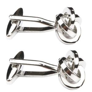 Description: A beautiful pair or mens silver metal twist knot style cufflinks. Made of copper and brass and polished smooth with a thick sturdy clasp. Perfect way to dress up your suit!